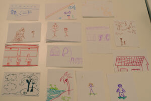 Za početak smo igrali igru nalik pokvarenom telefonu, samo što nismo slali rečenice nego crtež. Svatko je nacrtao svoj san i poslao crtež osobi do sebe. Ona ga je opisala riječima, sljedeći je prema tim uputama crtao, a iduća osoba zapisala što vidi. I tako ukrug, sve dok crtež nije stigao natrag vlasniku.